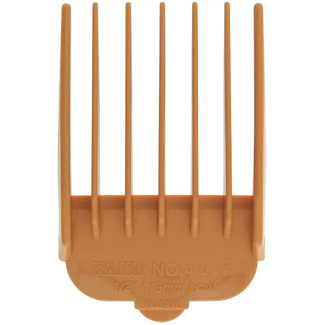 The #4 Cutting Guide comes in Black (3144-001)) or Orange (3144-1003) and measures at a cutting length of 1/2”. The Wahl Professional Cutting Guides fit all full-size Wahl Professional blades excluding the Competition Series and 5-in-1 Magic Blades.